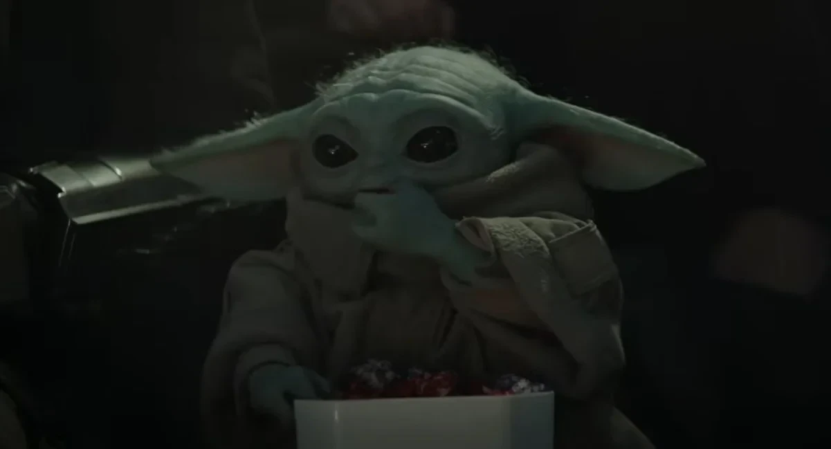Например, хитрый Грогу попытается с помощью своих сил незаметно подвинуть к себе миску с угощеньем. Также полюбившийся поклонникам «Малыш Йода» с интересом наблюдает за поединком и поедает местный вариант попкорна. А в конце трейлера Грогу расправляется с монстром с помощью меткого выстрела, что отмечает даже спутник миловидного героя.