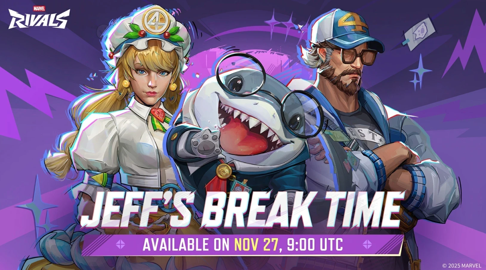 2 фотоЕстественно, без новеньких костюмов обновление не обошлось. Они находятся в мини-вариации боевого пропуска под названием Jeff’s Break Time. Среди бесплатных костюмов есть наряд для акулёнка Джеффа. А в премиальной версии находятся костюмы для Невидимой леди и Мистера Фантастика. Также в магазине можно купить «конфетный» наряд Венома.