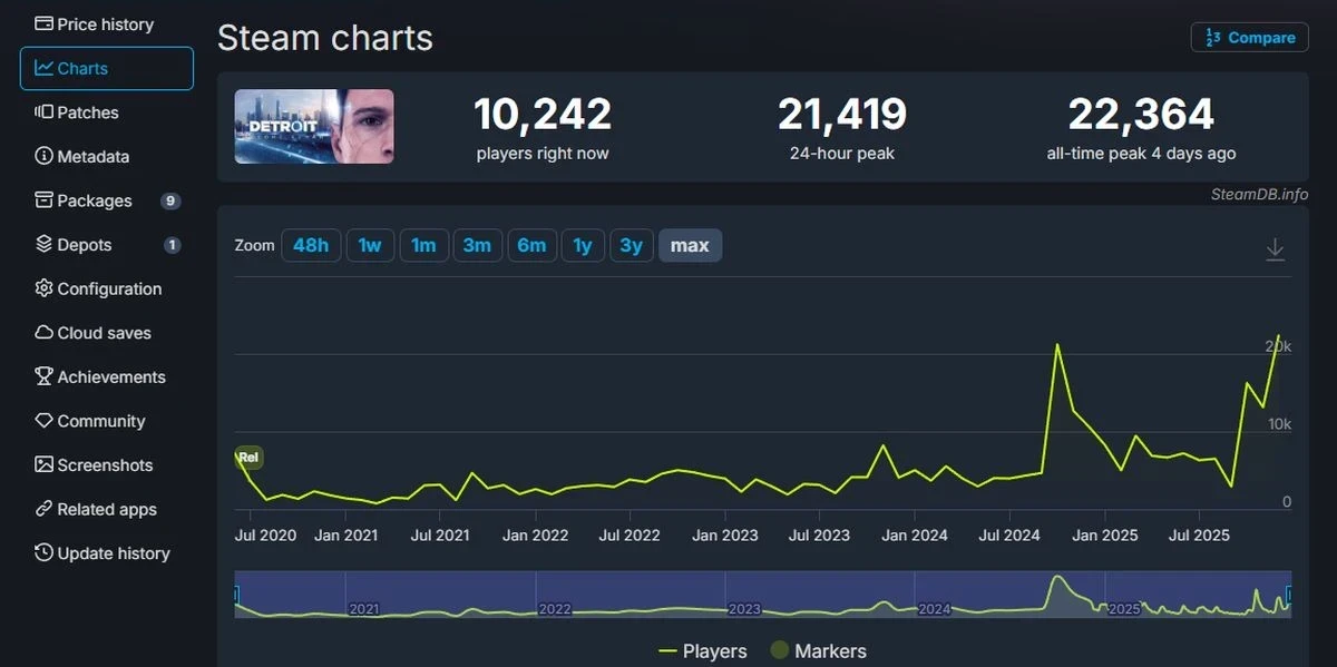 Detroit: Become Human обновила рекорд по пиковому онлайну в Steam благодаря распродаже